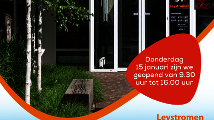 Donderdag 15 januari kantoor open van 9.30 tot 16.00 uur vanwege 15 jaar Leystromen