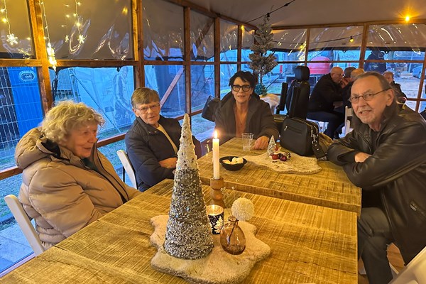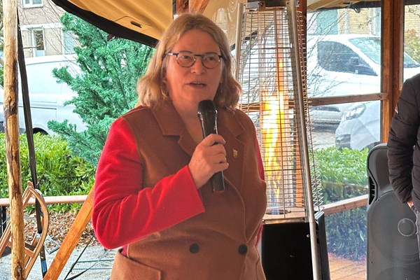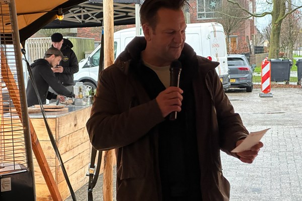 Het was een gezellig samenzijn in de winterse tent van bewoners, medewerkers van Caspar de Haan en Leystromen, en ook wethouder Noordergraaf was aanwezig. De tent was mooi versierd met lichtjes en branders. Buiten bakten de pizzabakkers heerlijke pizza's.
