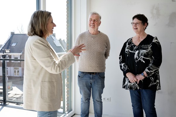 “Zo fijn om nu eindelijk de sleutel van ons nieuwe appartement te krijgen”. De familie Spanjer loopt trots door hun appartement in het net opgeleverde appartementencomplex in het Land van Anna in Goirle. Het complex bestaat uit 27 prachtige sociale huur appartementen. Wethouder Liselotte Franssen feliciteert het echtpaar met hun mooie nieuwe stek. “Ik hoop dat u zich snel thuis voelt” zegt de wethouder. En dat doen ze eigenlijk nu al.
